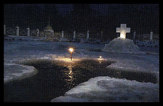 ![]() Ритуал купания в крещенской купели. |